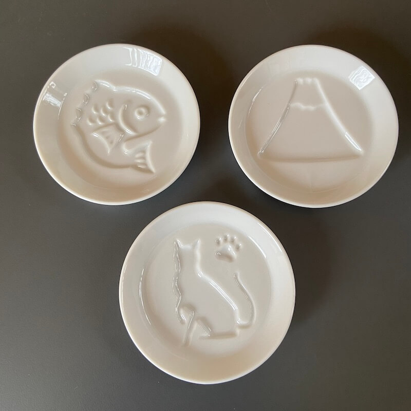Fun ceramic sauce dishes that highlight a design when filled with liquid. Available with designs Cat, Fish and Mt Fuji.