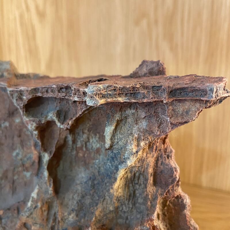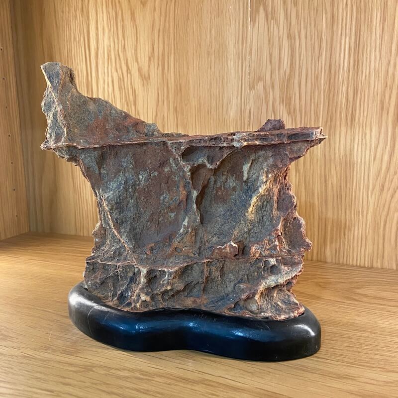 An individual’s perception and interpretation of a stone will often differ but in general, the stones represent values such as stability, longevity, and immortality. Commonly, Suiseki stones take the form of distant mountains, waterfalls, animals or islands. This stone is made from weathered serpentine.