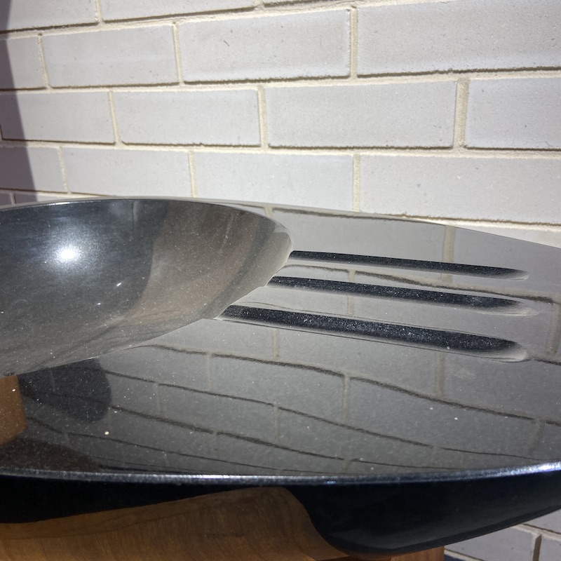 This polished granite basin features a distinctive elongated form with a smooth, integrated side shelf for added function and visual interest. The deep, glossy finish highlights the natural grain of the stone, while the gently curved bowl offers a comfortable, sculptural washing area. Both practical and striking, this basin combines modern design with the timeless durability of natural granite, making it a standout piece for contemporary bathrooms.