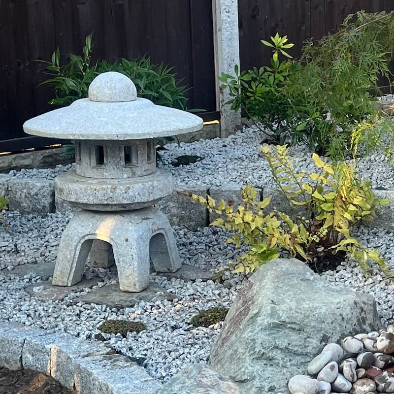 Snow lanterns are most often used in Japanese water basin arrangements and need to be chosen with care to match the proportions of the water basin used. The 45cm lantern works well with a 30cm Japanese water basin and the 60cm lantern works well with a 45cm Japanese water basin.